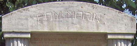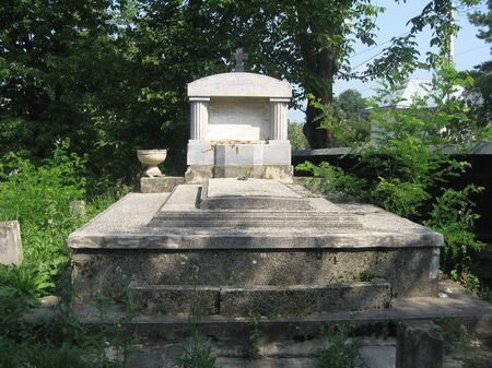 Miejsce spoczynku Adolfa Marina – grobowiec rodzinny na cmentarzu przy kościele pw. św.św. Archaniołów Michała i Gabriela w miejscowości Călinesti w okręgu Suczawa w Rumunii oraz zbliżenie napisu nad wejściem.