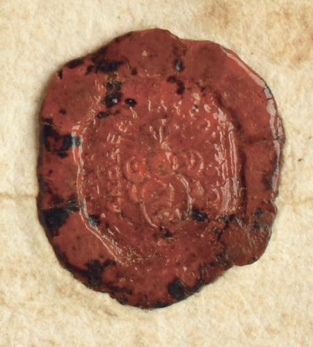 Ze sporządzonego w 1665 roku testamentu rajcy Andrzeja Jasowskiego: podpis oświadczającego ostatnią wolę i odciski w laku jego gmerku (pieczęci z herbem) – oraz zbliżenie odcisku pieczęci (Archiwum Narodowe w Krakowie, sygn. rkps 779, s. 954)