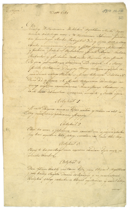 Z księgi ślubów Liber Copulatorum z lat 1800–1846 parafii św. Józefa w Podgórzu: wpis z 1806 roku poświadczający zawarcie związku małżeńskiego między Józefem Łopackim a Franciszką Nowakowską, czemu świadkował Andrzej Komarnicki, burmistrz Podgórza, tu określony jako proconsul – oraz zbliżenie zapisu imienia i urzędu (Archiwum parafii św. Józefa w Podgórzu, Liber Copulatorum, t. II, s. 23)Z najstarszych akt dotyczących powstania miasta Podgórza obejmujących lata 1779–1845: strony pierwsza i ostatnia kopii układu zawartego 10 sierpnia 1810 roku między władzami skarbowymi Księstwa Warszawskiego a miastem Podgórzem, wykonującego dekret cesarski z 9 czerwca tegoż roku w sprawie ustanowienia wolnego handlu w mieście Podgórzu; ze strony miasta układ podpisywali umocowani przez magistrat obywatele i kupcy podgórscy, w obecności między innymi Andrzeja Komornickiego, tu nazwanego „prezydentem” – oraz zbliżenie zapisu imienia i urzędu (Archiwum Narodowe w Krakowie, sygn. P 1, s. 323, 330)