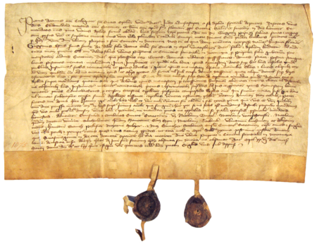 Dokument wydany w 1375 roku w Opolu, w którym Piotr, dziekan kolegiaty św. Krzyża w Opolu, poleca wezwać rajców krakowskich, wśród nich Bartłomieja, niegdyś menniczego, do stawienia się przed nim na sąd w sprawie sporu o pastwiska między miastem Krakowem a klasztorem Norbertanek na Zwierzyńcu – oraz powiększenie zapisu imienia i urzędu menniczego (Archiwum Państwowe w Krakowie, sygn. perg. 60)
