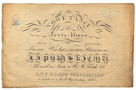 Okładka wydanych w Krakowie w roku 1825 nut kompozycji tanecznych Antoniego Sokulskiego dedykowanych baronowi Emanuelowi Lipowskiemu, ówczesnemu konsulowi – rezydentowi Austrii w WMK;