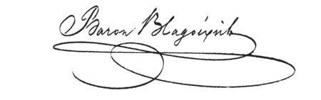 Stempel pieczęci (zwierciadlane odbicie) Senatu Rządzącego WMK udzielającego godności honorowego obywatelstwa oraz własnoręczny podpis uhonorowanego: Baron Blagoevich.