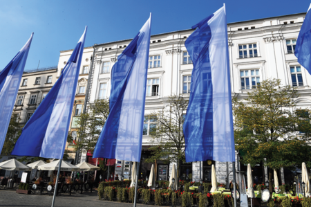 4. Rozmiar eksponowanej flagi miejskiej powinien być zbieżny z rozmiarami innych eksponowanych wraz z nią flag.