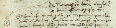 Z księgi miejskiej ławniczej Kleparza obejmującej lata 1499–1528: początkowy fragment wpisu z 1503 roku dokumentującego sprawę przed ławą dotyczącą zmarłego już Gabriela, rajcy kleparskiego – oraz zbliżenie zapisu imienia i urzędu (Archiwum Narodowe w Krakowie, sygn. KL 1, s. 52)