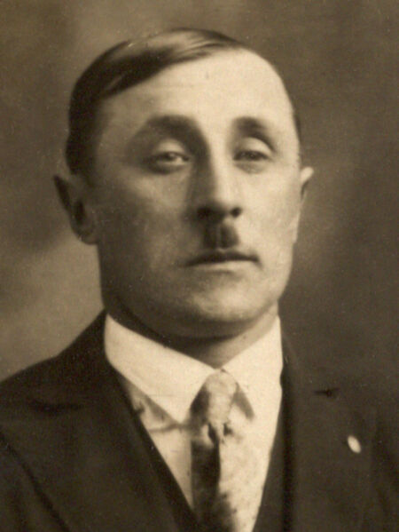 Rok 1928, w lipcu uroczystość poświęcenia gmachu Pałacu Wielopolskich wraz z salą obrad Rady Miejskiej wyremontowaną po pożarze z 1926 roku; przemawia prezydent Karol ROLLE (nr 2861), obok wiceprezydent Józef SARE (nr 2444), przed nimi na podium magistracki sekretarz Rady Franciszek Strasik.
