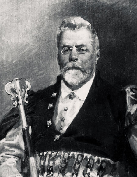 Rok 1914, w dniu 8 marca uroczyste posiedzenie Rady Miejskiej, na którym uhonorowano prezydenta Juliusza LEO (nr 2276) – został on pierwszym prezydentem Krakowa z tytułem ekscelencji. W centrum widoczny prezydent, po bokach wiceprezydenci Henryk SZARSKI (nr 2449) i Józef SARE (nr 2444).