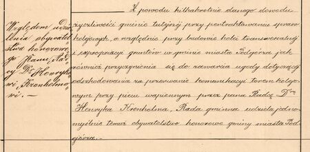 tytuł honorowego obywatela Podgórza nadany 20 grudnia 1886 roku |