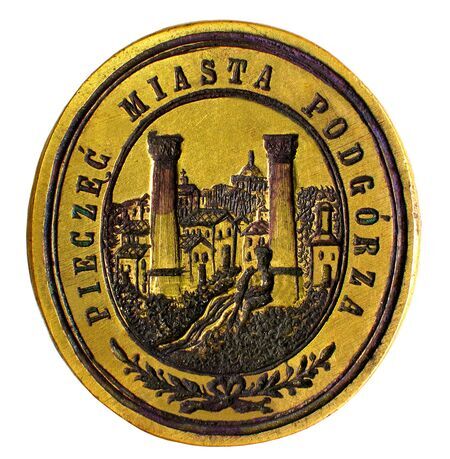 Stempel pieczęci (zwierciadlane odbicie) miasta Podgórza oraz własnoręczny podpis uhonorowanego.