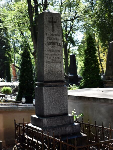 Reprodukcja wpisu do Złotej księgi miasta Podgórza oraz na Starym Cmentarzu w Tarnowie grób Felicji, żony Henryka Kronhelma von Nordheim, zmarłej w 1904 r.; pomnik ten wystawił zapewne owdowiały mąż, nie został tam jednak później pochowany.