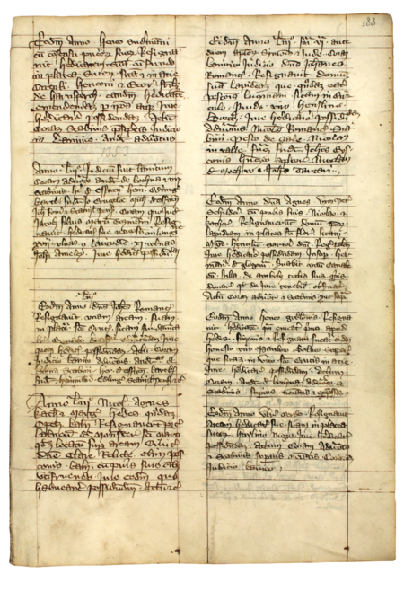 Z „Najstarszej księgi” strona 183 z wpisem z roku 1353, poświadczającym, że przed ławnikami, w tym Henrykiem pisarzem, Jan Romancz sprzedał dom murowany położony przy Rynku, należący niegdyś do Paszka Luczmana – oraz powiększenie zapisu imienia (Archiwum Państwowe w Krakowie, sygn. rkps 1, s. 183)