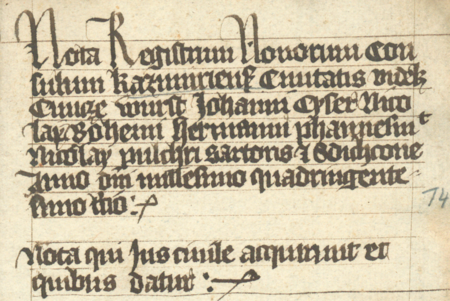Z księgi radzieckiej Kazimierza obejmującej lata 1402–1416: fragment wpisu dokumentującego wybór rajców na rok 1403, z Hermanem Phannesmitem w składzie – oraz zbliżenie zapisu imienia (Biblioteka Jagiellońska, sygn. rkps 1045/1, k. 36)