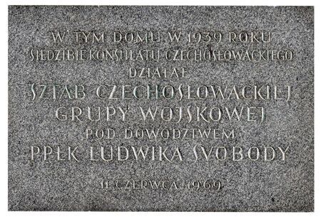 Tablica na budynku dawnego (w latach 1938–1939) konsulatu czechosłowackiego przy ul. Westerplatte (wówczas Potockiego), gdzie po wybuchu wojny działał sztab czechosłowackiej grupy wojskowej pod dowództwem Ludvíka Svobody – był to Legion Czechów i Słowaków wspierający Polaków w kampanii wrześniowej. Tablicę wmurowano 11 czerwca 1969 r., na trzy miesiące przed przyjazdem do Krakowa Ludvíka Svobody, wtedy prezydenta Czechosłowackiej Republiki Socjalistycznej – podczas tego pobytu otrzymał tytuł honorowego obywatela Krakowa (anulowany w 1992 r.). |