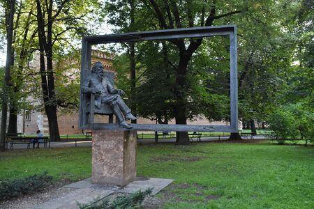 Pomnik Józefa Dietla, honorowego obywatela Krakowa z 1861 r., odsłonięty w 1938 r. na pl. Wszystkich Świętych, dzieło Xawerego Dunikowskiego (fotografia z 2020 r., po zmodernizowaniu otoczenia pomnika). |