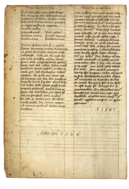 Z „Najstarszej księgi” strona 216 z wpisem z 1367 roku zawierającym wykaz rajców uchwalających wilkierz w sprawie podatku od nieruchomości, wśród których figuruje Jakub Wal – oraz powiększenie zapisu imienia (Archiwum Państwowe w Krakowie, sygn. rkps 1, s. 216)