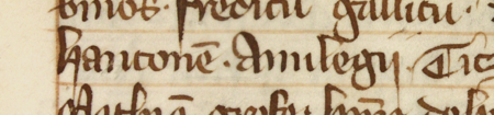 Z „Najstarszej księgi” strona 155 z wpisem z 1343 roku, dotyczącym sprawy przed ławą sądową z Janem Amylejem w składzie, w której Luczka, córka Jana słodownika, zwolniła synów Stosława Polaka z zarzutu nieprawego posiadania majątku – oraz powiększenie zapisu imienia (Archiwum Państwowe w Krakowie, sygn. rkps 1, s. 155)