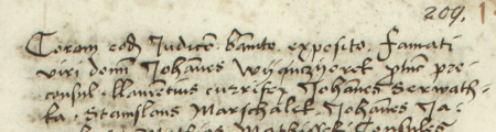 Z księgi ławniczej Kleparza obejmującej lata 1499–1528: fragment wpisu z 1513 roku dotyczącego sprawy przed ławą z udziałem Jana Wjanczorka, wówczas burmistrza kleparskiego – oraz zbliżenie zapisu imienia i funkcji (Archiwum Narodowe w Krakowie, sygn. KL 1, s. 209)