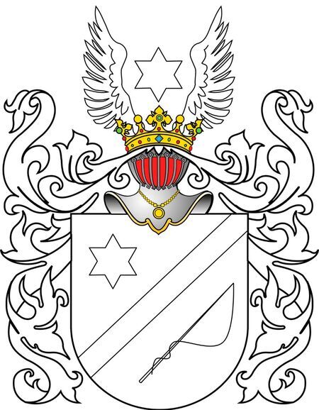 Herb szlachecki Arnold nadany ojcu Jerzego Arnolda oraz własnoręczny podpis uhonorowanego.