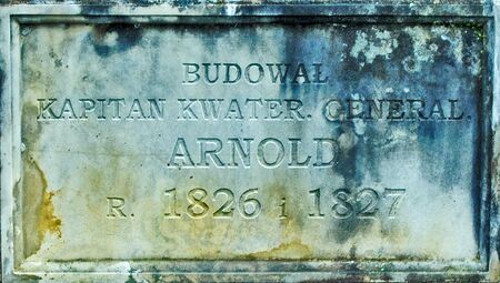Tablica z wybudowanej przez Jerzego Arnolda śluzy Gorczyca na Kanale Augustowskim; obok miejsce pochówku na cmentarzu w Sylwanowcach w rejonie grodzieńskim, obecnie na Białorusi.