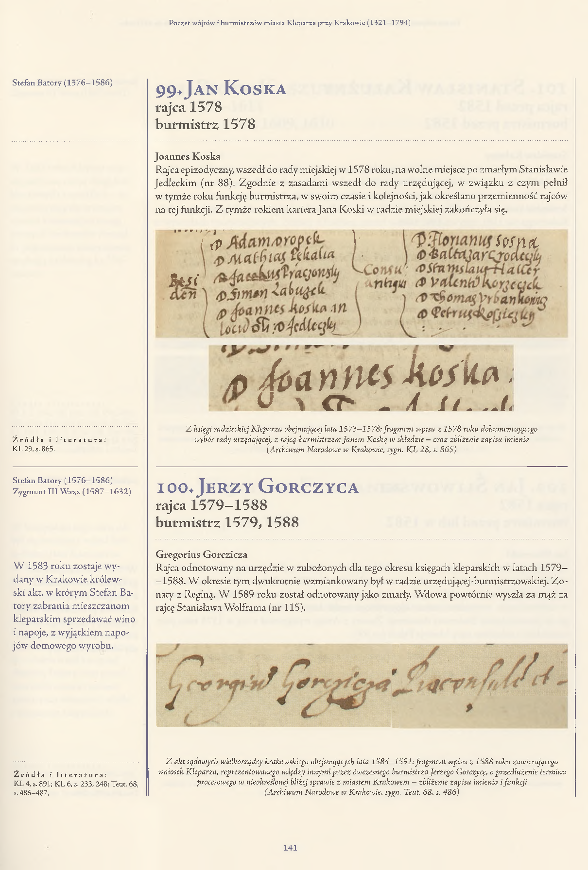 Z akt sądowych wielkorządcy krakowskiego obejmujących lata 1584–1591: fragment wpisu z 1588 roku zawierającego wniosek Kleparza, reprezentowanego między innymi przez ówczesnego burmistrza Jerzego Gorczycę, o przedłużenie terminu procesowego w nieokreślonej bliżej sprawie z miastem Krakowem – zbliżenie zapisu imienia i funkcji (Archiwum Narodowe w Krakowie, sygn. Teut. 68, s. 486)