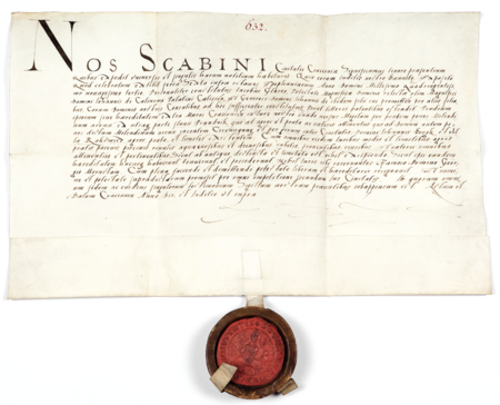 Kopia dokumentu wydanego w 1493 roku w Krakowie, w którym ławnicy miasta Krakowa poświadczają, że Jakub Glaser z upoważnienia wdowy po Janie z Kalinowy, wojewodzie kaliskim, oraz ich syna Jana, ustąpił Jerzemu Morsztynowi posiadłość pod Krakowem nad Prądnikiem, koło młyna w stronę Mogiły – oraz powiększenie zapisu imienia (Biblioteka Czartoryskich w Krakowie, sygn. perg. 632)