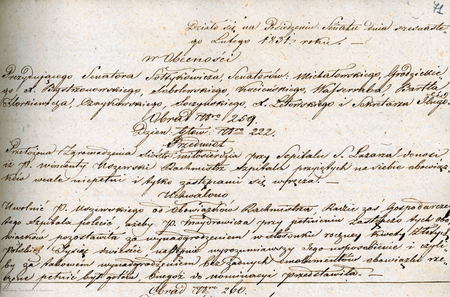 Z księgi protokołów obrad Senatu Rządzącego Wolnego Miasta Krakowa z 1831 roku fragment strony 71 z początkiem protokołu obrad prowadzonych 16 lutego pod prezydencją Józefa Sołtykowicza – oraz powiększenie zapisu imienia i funkcji senatora prezydującego (Archiwum Państwowe w Krakowie, sygn. WMK IV-18, s. 71)
