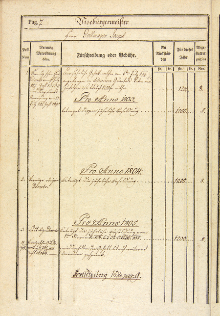Z akt magistratu miasta Krakowa 1796–1816 strona 7 z wykazem poborów Józefa Gollmayera w latach 1803–1805 na etacie wiceprezydenta – podburmistrza (1200 złotych reńskich rocznie; za 1 reńskiego można kupić było na przykład dwie kopy, czyli 120 jaj) – oraz powiększenie nazwiska i urzędu (Archiwum Państwowe w Krakowie, sygn. Mag. I 743, s. 7)