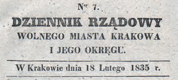Obwieszczenie Senatu Rządzącego Wolnego Miasta Krakowa opublikowane