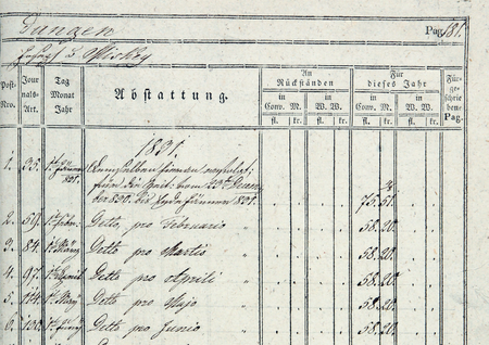 Z akt kasowych Podgórza obejmujących rok 1831: lista płac, którą otwiera Józef Miskey, burmistrz – oraz zbliżenie zapisu imienia (Archiwum Narodowe w Krakowie, sygn. P 446, s. 181)Z akt kuratorskich Podgórza obejmujących lata 1798–1847: obwieszczenie z 1832 roku w sprawie publicznej licytacji, podpisane przez burmistrza Józefa Miskeya (Archiwum Narodowe w Krakowie, sygn. P 264, s. 711)
