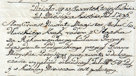 Z księgi przyjęć do prawa miejskiego Krakowa obejmującej lata 1755–1797: wpis z 1796 roku stwierdzający przyjęcie do krakowskiego prawa miejskiego Ernesta Nawraty, mistrza cechu siodlarskiego, za rekomendacją udzieloną przez pełniącego obowiązki burmistrza Podgórza Karola Goriuppa, nazwanego tu „prezydentem” – oraz zbliżenie zapisu imienia i urzędu (Archiwum Narodowe w Krakowie, sygn. rkps 1430, s. 188)Z akt spadkowych Podgórza obejmujących lata 1797–1852: sprawozdanie magistrackie z 1799 roku dotyczące wyników publicznej licytacji po zmarłym mieszkańcu Podgórza, podpisane przez Karola Goriuppa, ówcześnie pełniącego obowiązki burmistrza miasta – oraz zbliżenie podpisu i zapisu urzędu (Archiwum Narodowe w Krakowie, sygn. P 269, s. 75)