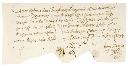Dokument wystawiony w 1594 roku w Krakowie przez Kaspra Chodowicza i Antoniego Frączkowicza (nr 432), występujących jako prowizorowie szpitala św. św. Sebastiana i Rocha (zwanego szpitalem scholarów lub żakowskim), gdzie leczono choroby weneryczne (głównie poprzez nacieranie rtęcią), w którym poświadczają oni, że przyjęli od żupnika wielickiego Piotra Franko czynsz widerkaufowy należny za rok 1594, a przeznaczony na rzecz tego szpitala – oraz powiększenie własnoręcznego podpisu i znaku pieczętnego (gmerku) Kaspra Chodowicza (Muzeum Narodowe w Krakowie, Biblioteka Książąt Czartoryskich, sygn. rkps 574/24)