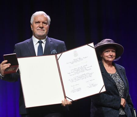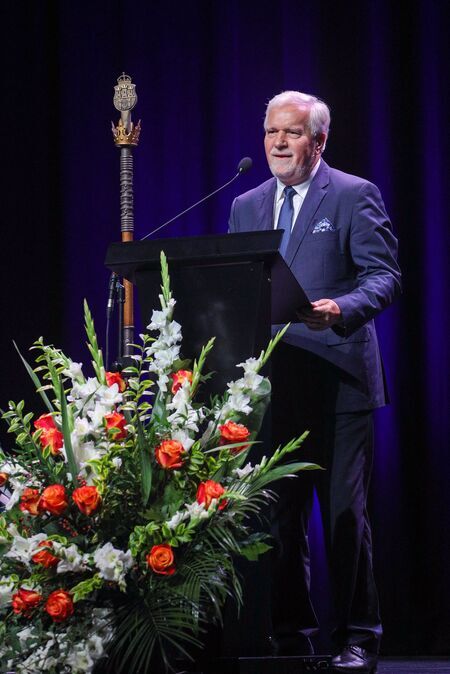 Z uroczystości wręczenia medalu z dyplomem 29 września 2021 r. w Centrum Kongresowym ICE Kraków. Kazimierz Barczyk podczas uroczystej sesji RMK oraz własnoręczny podpis uhonorowanego.