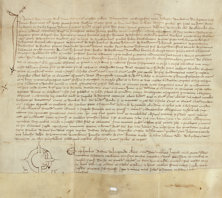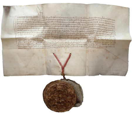 Dokument wydany w 1324 roku, w którym Jan, opat w Koprzywnicy, odstąpił klasztorowi w Mogile część ról w Praczowie w zamian za równą część ról w Łęgu nad Wisłą – oraz powiększenie zapisu nazwy wsi „Łęg nad Wisłą” (Archiwum Opactwa Cystersów w Mogile, sygn. dypl. perg. 55)Dokument wydany w 1399 roku w Korczynie, w którym król Władysław [ Jagiełło] stwierdził, że klasztor w Koprzywnicy sprzedał wieś Łęg Mikołajowi, opatowi klasztoru w Mogile, za 475 grzywien groszy praskich; przy dokumencie wyciśnięta w wosku pieczęć majestatowa Władysława Jagiełły (opis na stronie sąsiedniej) – oraz powiększenie zapisu nazwy wsi „Łęg” (Archiwum Opactwa Cystersów w Mogile, sygn. dypl. perg. 142)Pieczęć majestatowa Władysława Jagiełły o rzeczywistej średnicy 122 mm, z dokumentu wystawionego w 1399 roku – wraz z opisem (opracowanie: Marcin Starzyński)Dokument wydany w formie aktu notarialnego w 1389 roku w Mogile, mocą którego tamtejszy klasztor Cystersów ustanowił przeora Stanisława, podprzeora Jana, klucznika Pawła i prokuratora Mikołaja pełnomocnikami w sprawie kupna wsi Moniakowice i Łęg oraz sprzedaży miastu Krakowowi wsi Dąbie; na dokumencie widoczny znak notarialny – oraz powiększenie zapisu nazwy wsi „Łęg” (Archiwum Narodowe w Krakowie, sygn. perg. 90)(1826) Odciski pieczęci urzędowych Łęgu z lat 1826 i 1926 oraz odcisk w wosku pieczęci Pawła, opata klasztoru Cystersów w Mogile, wielowiekowego właściciela wsi Łęg; w centralnym polu w gotyckim ołtarzyku postać opata trzymającego w prawej ręce pastorał, w lewej książkę, w otoku napis: (SIGILLUM) F(RAT)RIS ABB(A)TIS CLARE TUMBE (Archiwum Narodowe w Krakowie, sygn. 29/455/247a, nlb.; PUZKr 46, nlb.; sygn. 29/1597/85, nlb.)(1926) Odciski pieczęci urzędowych Łęgu z lat 1826 i 1926 oraz odcisk w wosku pieczęci Pawła, opata klasztoru Cystersów w Mogile, wielowiekowego właściciela wsi Łęg; w centralnym polu w gotyckim ołtarzyku postać opata trzymającego w prawej ręce pastorał, w lewej książkę, w otoku napis: (SIGILLUM) F(RAT)RIS ABB(A)TIS CLARE TUMBE (Archiwum Narodowe w Krakowie, sygn. 29/455/247a, nlb.; PUZKr 46, nlb.; sygn. 29/1597/85, nlb.)(nd) Odciski pieczęci urzędowych Łęgu z lat 1826 i 1926 oraz odcisk w wosku pieczęci Pawła, opata klasztoru Cystersów w Mogile, wielowiekowego właściciela wsi Łęg; w centralnym polu w gotyckim ołtarzyku postać opata trzymającego w prawej ręce pastorał, w lewej książkę, w otoku napis: (SIGILLUM) F(RAT)RIS ABB(A)TIS CLARE TUMBE (Archiwum Narodowe w Krakowie, sygn. 29/455/247a, nlb.; PUZKr 46, nlb.; sygn. 29/1597/85, nlb.)
