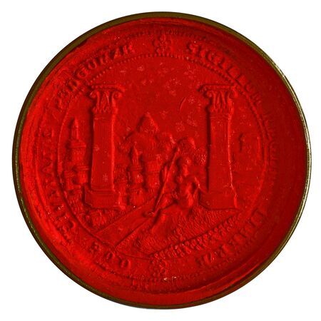 Odcisk pieczęci miasta Podgórza przywieszonej przy dyplomie honorowego obywatelstwa Leopolda Płazińskiego oraz własnoręczny podpis uhonorowanego.