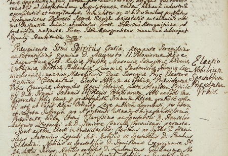 Z księgi radzieckiej obejmującej lata 1729–1736 fragment strony 251 z wykazem rajców urzędujących nominowanych na rok 1730, wśród których znajduje się Ludwik Guilhaum – oraz powiększenie zapisu imienia (Archiwum Państwowe w Krakowie, sygn. rkps 477, s. 251)