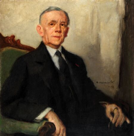Portret Ludwika Solskiego pędzla Alfonsa Karpińskiego namalowany w Krakowie w 1935 r. oraz własnoręczny podpis uhonorowanego.