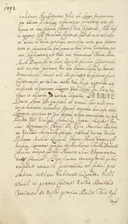 Z księgi grodzkiej krakowskiej obejmującej lata 1647–1648: przód okładziny księgi i jedna ze stron zawierających wpis z 1647 roku stanowiący oblatę aktu wydanego przez Władysława IV Wazę w Warszawie w 1646 roku potwierdzenia statutu cechu kleparskich kowali i ślusarzy, z przywołaniem zatwierdzenia tego statutu z roku 1490 przez rajców kleparskich, z Mikołajem bednarzem w składzie – oraz zbliżenie zapisu imienia (Archiwum Narodowe w Krakowie, sygn. CCR 74, s. 1492)