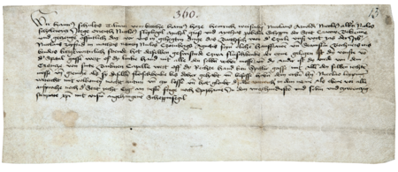 Dokument wydany w 1427 roku w Krakowie, w którym ława miasta Krakowa poświadcza, że Mikołaj Seyfrid (nr 200), jako pełnomocnik Mikołaja Czornbergera, jego żony Agnieszki i jej brata Stanisława Bochnera, ustąpił Mikołajowi Leipnigerowi dwie jatki mięsne w Krakowie, przy ul. Szpitalnej, w pobliżu kościoła – oraz powiększenie zapisu imienia (Biblioteka Czartoryskich w Krakowie, sygn. perg. 360, vol. V/13)