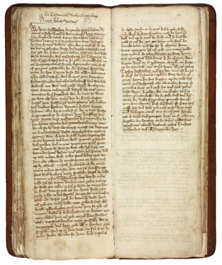 Z księgi ławniczej obejmującej lata 1408–1416 strony 104–105 z wpisem z 1413 roku, zawierającym testament mieszczanina krakowskiego Mikołaja Czeyinczopa poświadczony wobec rajców miejskich, wśród których wymieniono Mikołaja płatnerza – oraz powiększenie zapisu imienia (Archiwum Państwowe w Krakowie, sygn. rkps 4, s. 104–105)