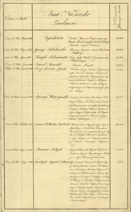 Prezes Senatu wnosi aby w dowód wdzięczności za wstawianie się do Tronu Cesarza WszechRosji JW Hrabiego Capodistria i Ignacego Sobolewskiego Ministrów tego Monarchy, tymże Prawo Obywatelstwa WMKra i Jego Okręgu udzielonym było.