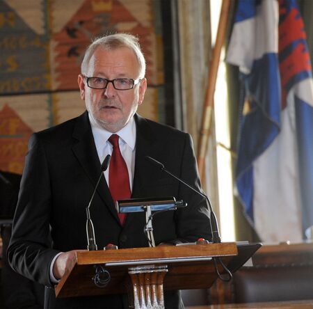 Z uroczystości wręczenia medalu z dyplomem 8 listopada 2013 r. w Pałacu Wielopolskich. W Sali Obrad RMK występuje prezes Izby Andrzej Matyja.
