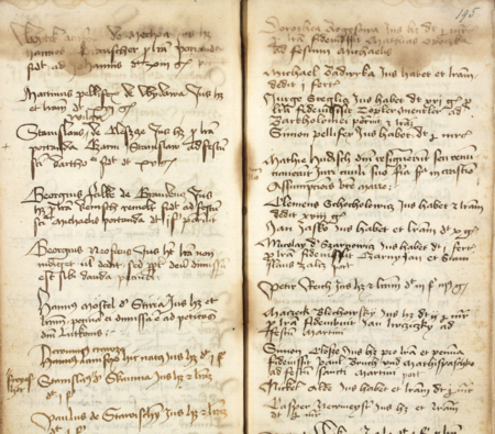 Z księgi przyjęć do prawa miejskiego obejmującej lata 1423−1493 fragment stron 194–195 z wpisem z 1462 roku, zawierającym rekomendację Pawła Brucha, udzielaną wraz z Maciejem Paszkiem, przy przyjęciu do prawa miejskiego niejakiego Szymona Cloze – oraz powiększenie zapisu imienia (Archiwum Państwowe w Krakowie, sygn. rkps 1421, s. 194−195)