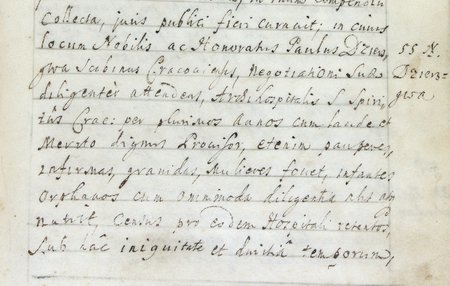 Z urzędowego spisu rajców obejmującego lata 1363–1802 fragment strony 67 z wpisem z 1726 roku o wyborze do rady na miejsce po zmarłym Kazimierzu Tuaterze (nr 588) nowego rajcy Pawła Dzierzgwy, jak zapisano, „zaangażowanego w pracę dla dobra publicznego, który był obdarzony pracowitością, licznymi talentami i darem zjednywania sobie ludzi” – oraz powiększenie zapisu imienia i funkcji burmistrza (Archiwum Państwowe w Krakowie, sygn. rkps 1477, s. 67)
