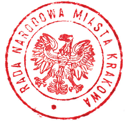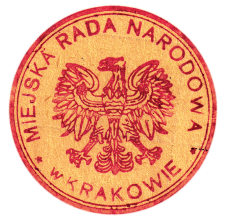 W latach powojennych, po przemianie ustrojowej, rzeczywisty samorząd uległ likwidacji (ostatecznie w roku 1950), a w Polsce Ludowej – datowanej na lata 1945–1990 – rolę lokalnych reprezentacji miały pełnić rady narodowe. W Krakowie odpowiednikami (przy całej różnicy ustrojowej) dawnej samorządowej Rady Miejskiej były organa uchwałodawcze występujące kolejno pod nazwami: w latach 1945–1957 – Miejska Rada Narodowa w Krakowie, w latach 1957–1964 – Rada Narodowa w m. Krakowie, w latach 1964–1975 – Rada Narodowa m. Krakowa i w latach 1975–1990 – Rada Narodowa Miasta Krakowa. Posługiwano się wówczas pieczęciami Rady Narodowej, czyli radzieckimi, ale nie z herbem miasta w polu, ale z godłem państwowym, jako że ciała te nie były lokalnym samorządem, lecz usytuowane zostały w systemie organów władzy państwowej. Podajemy tu przykłady tych pieczęci. Na marginesie: niezbyt rygorystycznie przestrzegano w napisach na otokach prawidłowego nazewnictwa rady narodowej, używano pieczęci także wtedy, gdy nomenklaturowo były już zdezaktualizowane (zob. il. 361–362).