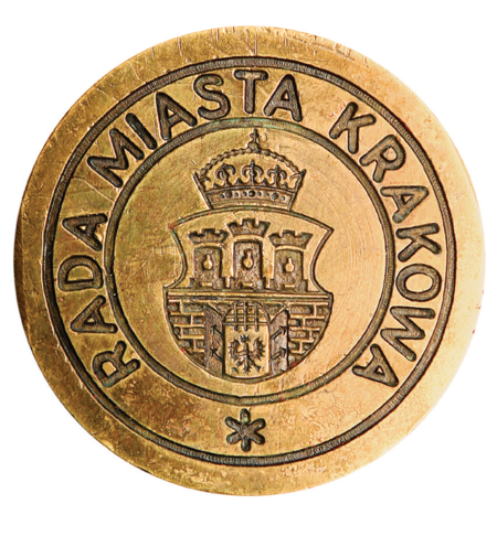 Dodajmy, że w dyspozycji przewodniczącego Rady Miasta Krakowa działającego w imieniu Rady pozostaje inny rodzaj pieczęci, mianowicie jeden z oficjalnych symboli Krakowa, jakim jest pieczęć miasta z jego tradycyjną nazwą w otoku (zob. il. 074–076).