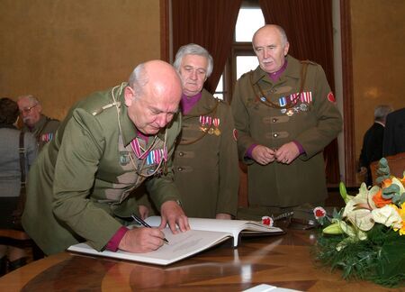 Z uroczystości wręczenia medalu z dyplomem 30 października 2007 r. w Pałacu Wielopolskich. Prezes Zarządu Towarzystwa Konrad Firlej z wiceprezesem Andrzejem Łopatą i skarbnikiem Stanisławem Doboszem w trakcie aktu wpisu do Księgi Medalu „Cracoviae Merenti” oraz logo laureata.