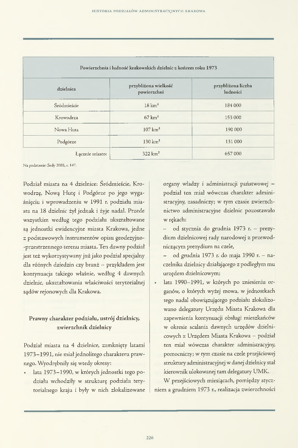 | Powierzchnia i ludność krakowskich dzielnic z końcem roku 1973 | ||