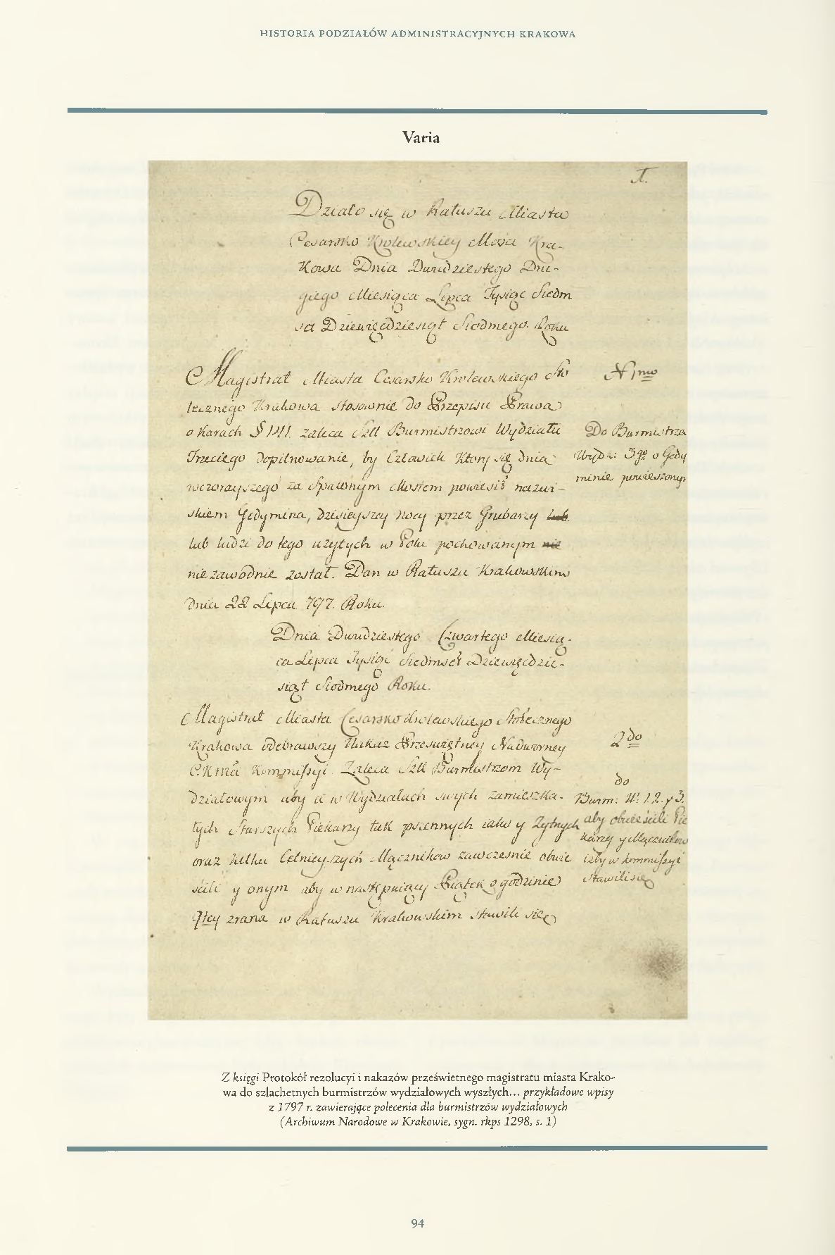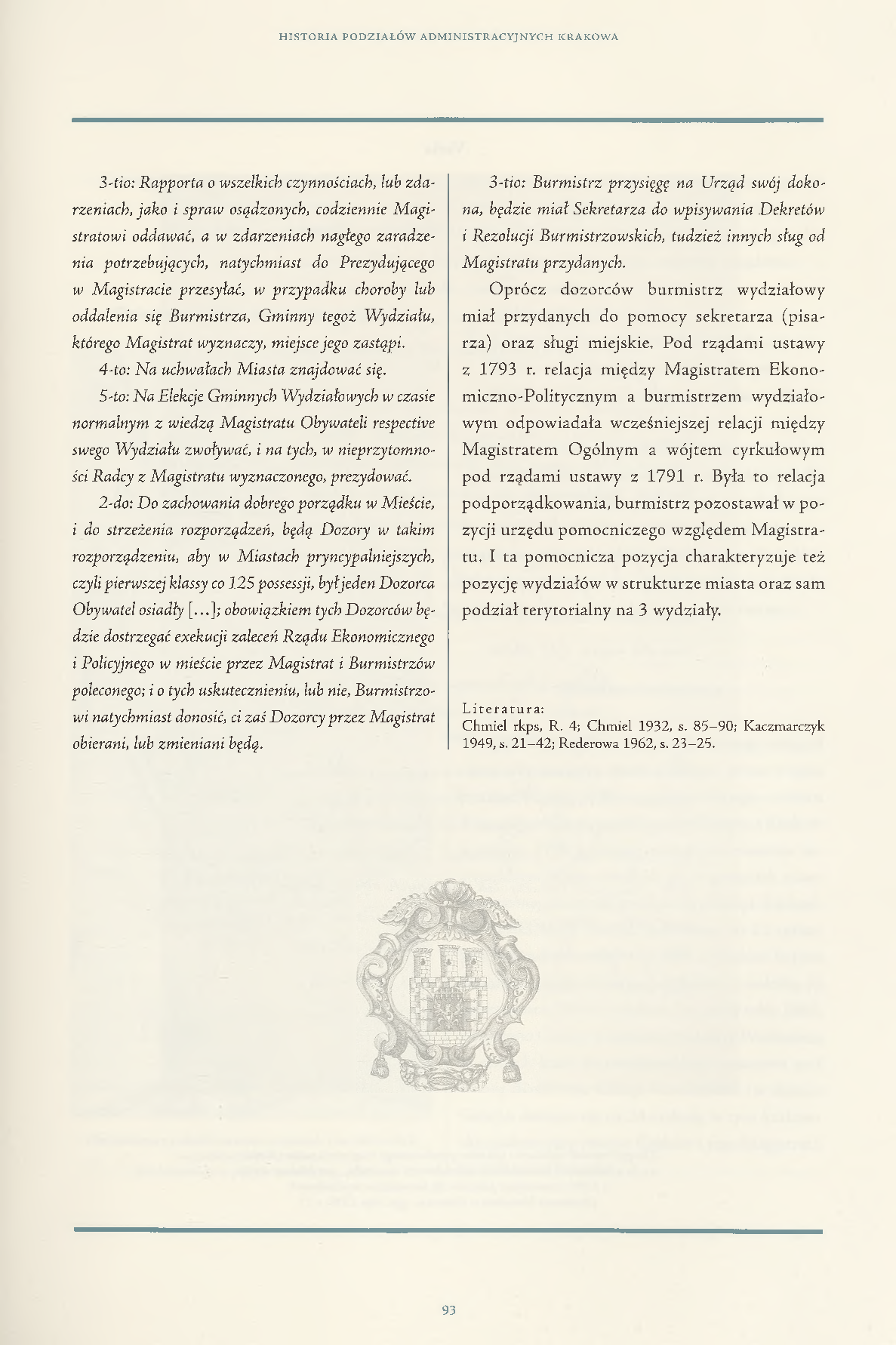 […] w tych Wydziałach respective każdego, będzie burmistrz przysięgły przez trzy porządki zgromadzone w czasie niżej przepisanym wybrany, którego obowiązki są następujące: