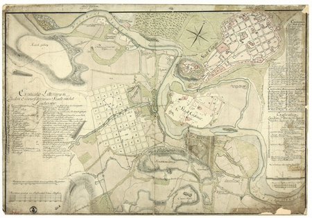 Sporządzony w 1779 roku przez Charles’a de Hoeferna plan pod oddającym w pełni zawartość tytułem Plan Krakowa, Kazimierza, Ludwinowa i Podgórza z projektem utworzenia nowego miasta na Ludwinowie oraz zmianami w rozplanowaniu zabudowy Podgórza. Na zbliżeniu po lewej stronie widoczny stan terenów Podgórza w chwili sporządzania planu, z zaznaczeniem prywatnych parcel i domów, na zbliżeniu po prawej stronie – plan zagospodarowania tych terenów, gdzie pod oznaczeniami cyfrowymi przewidziano między innymi: 17 – ratusz, 18 – szkołę, 19 – urząd cyrkularny, 20 – komendanturę z żandarmerią, 21 – rynek (Archiwum Narodowe w Krakowie, sygn. Z. Kart. II-13)