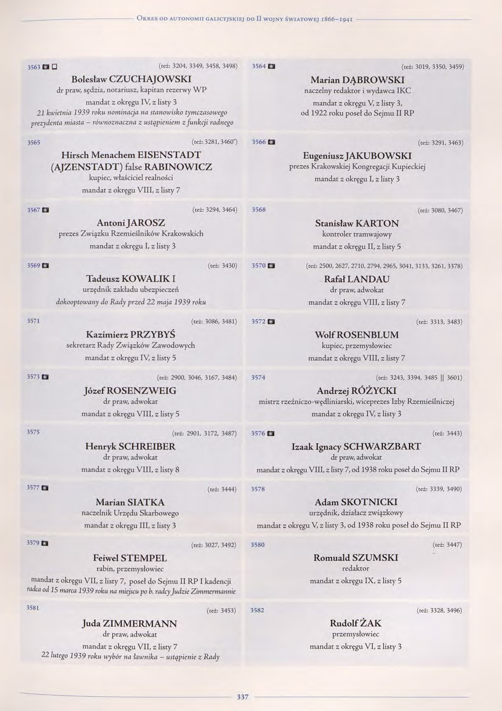 3499 (2919, 3038, 3124, 3259, 3272, 3412, 3468 || 3501) Stanisław KLIMECKIdr praw, adwokat, legionista, kapitan rezerwy WP, członek Narodowej Partii Robotniczej, nast. BBWR w 1939 roku prezydent Krakow