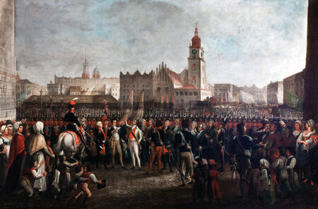 Z lewej strony na fragmencie obrazu Michała Stachowicza Przysięga Tadeusza Kościuszki